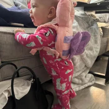 My 7-month-old is on the journey to standing, and this product has been a lifesaver, preventing countless head bumps while being incredibly cute!