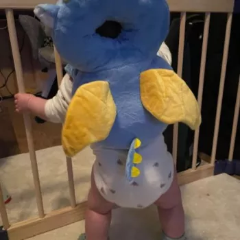 I'm absolutely thrilled with this item! It's heartwarming to see the baby wearing it, and it's incredibly effective in cushioning falls when they let themselves tumble. I'm in love with it!